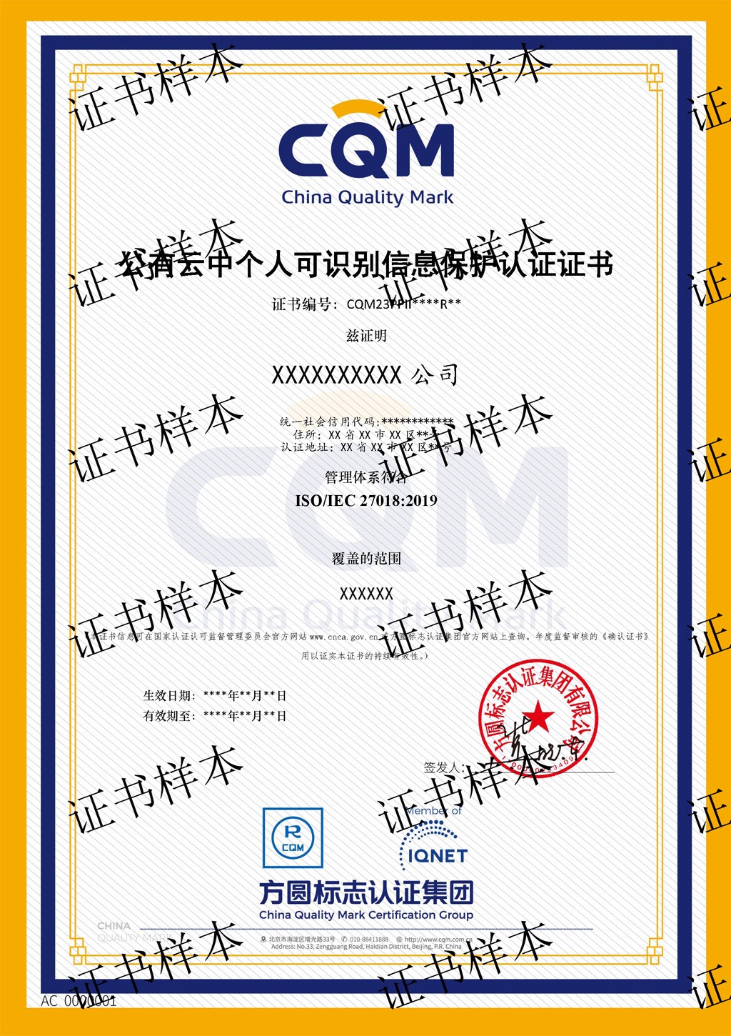 認證依據(jù)為 ISO/IEC 27018,適用于公共云服務(wù)提供商、通過云計算作為個人識別信息(PII)處理者提供信息處理服務(wù)的組織等
